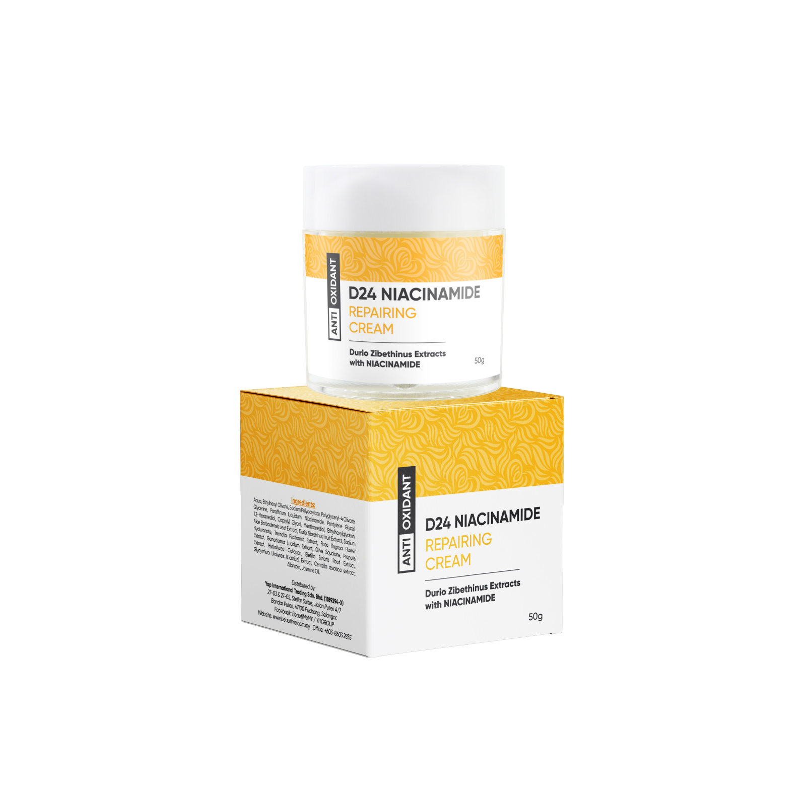 Malaysia’s first durian-infused repair cream, formulated with D24 Fruit extract, Niacinamide + 9 Plant Extracts.